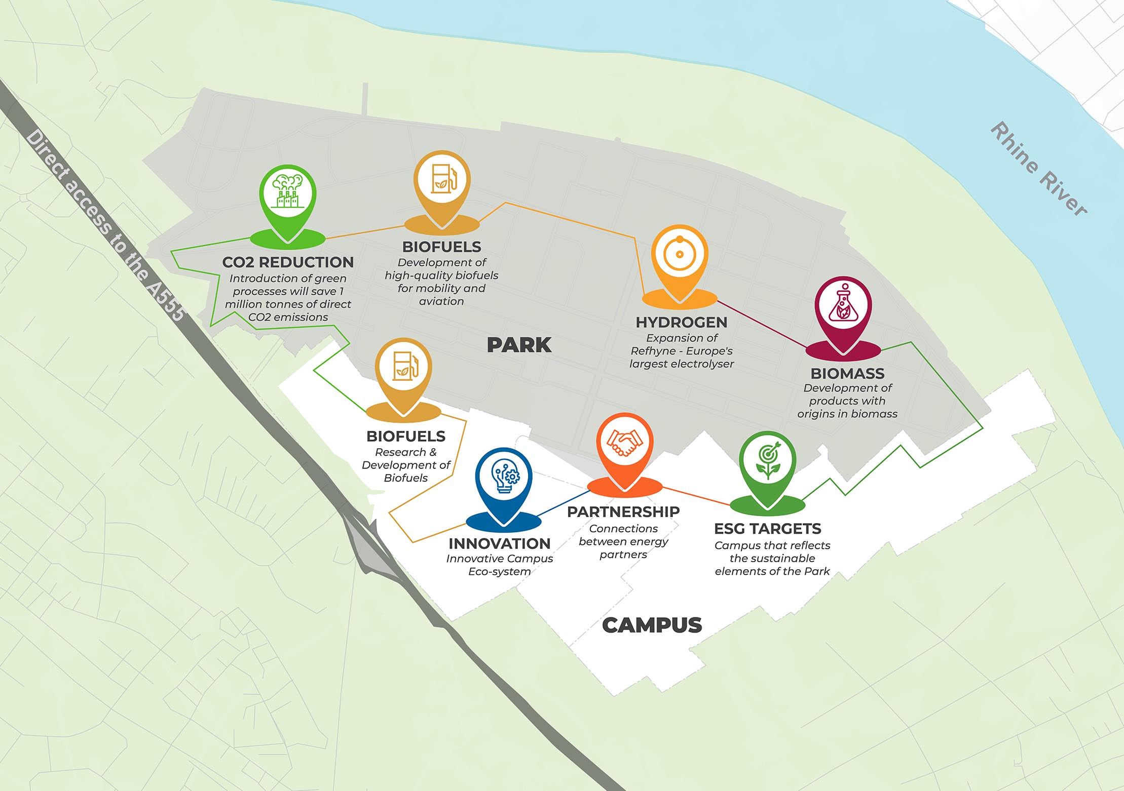 Shell will drive this process forward by entering strategic partnerships or physical integration of partners by co-location or joint ventures, where the park provides permitted plots, services, and utilities. REC and the neighbouring Park are part of Shell's commitment to become carbon neutral by 2045 or sooner.